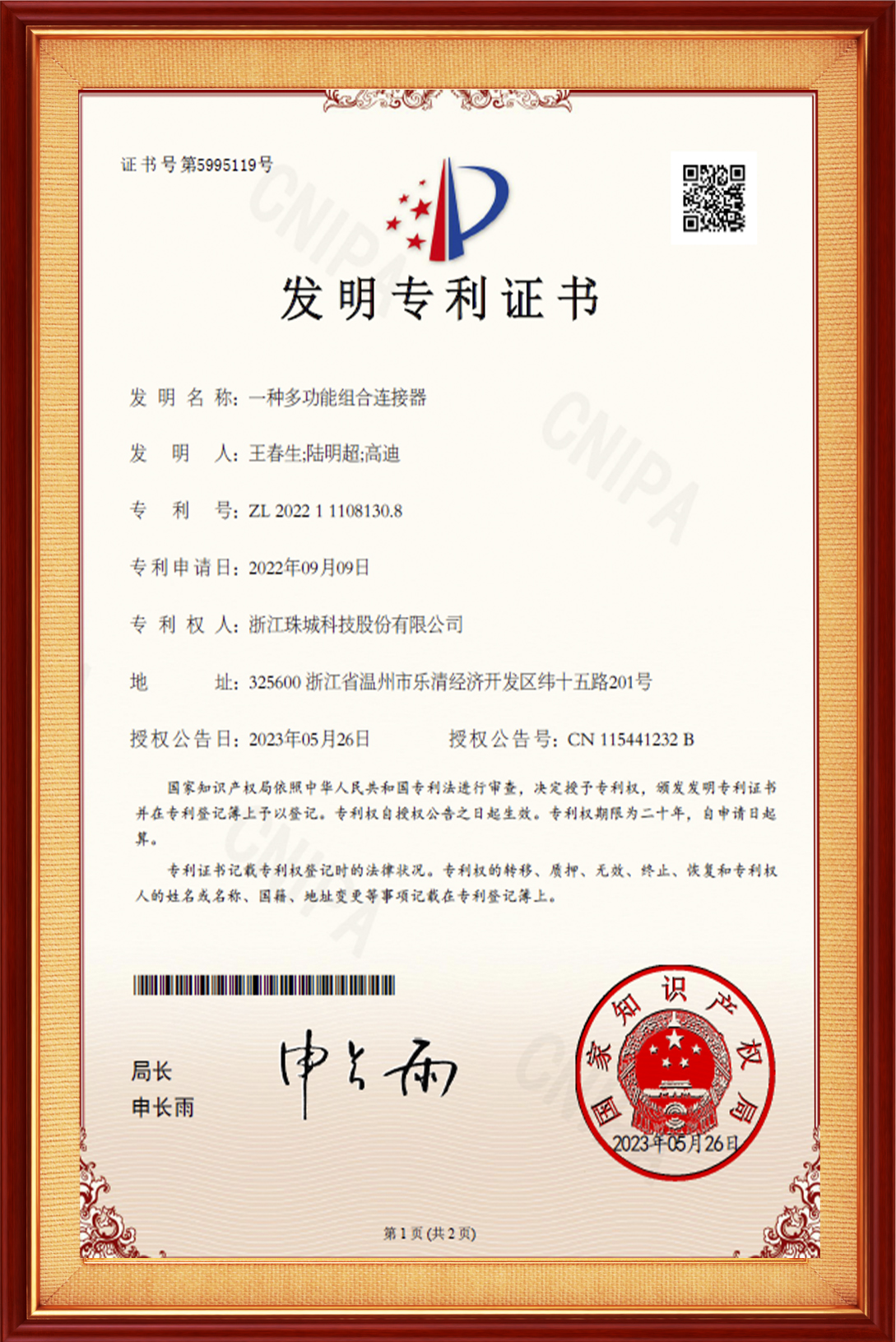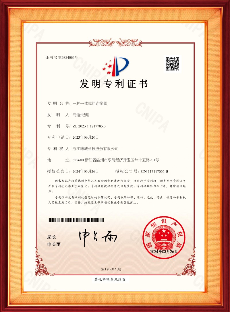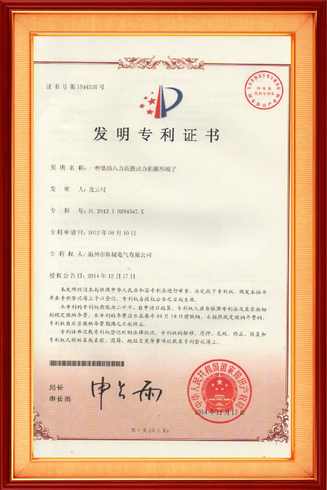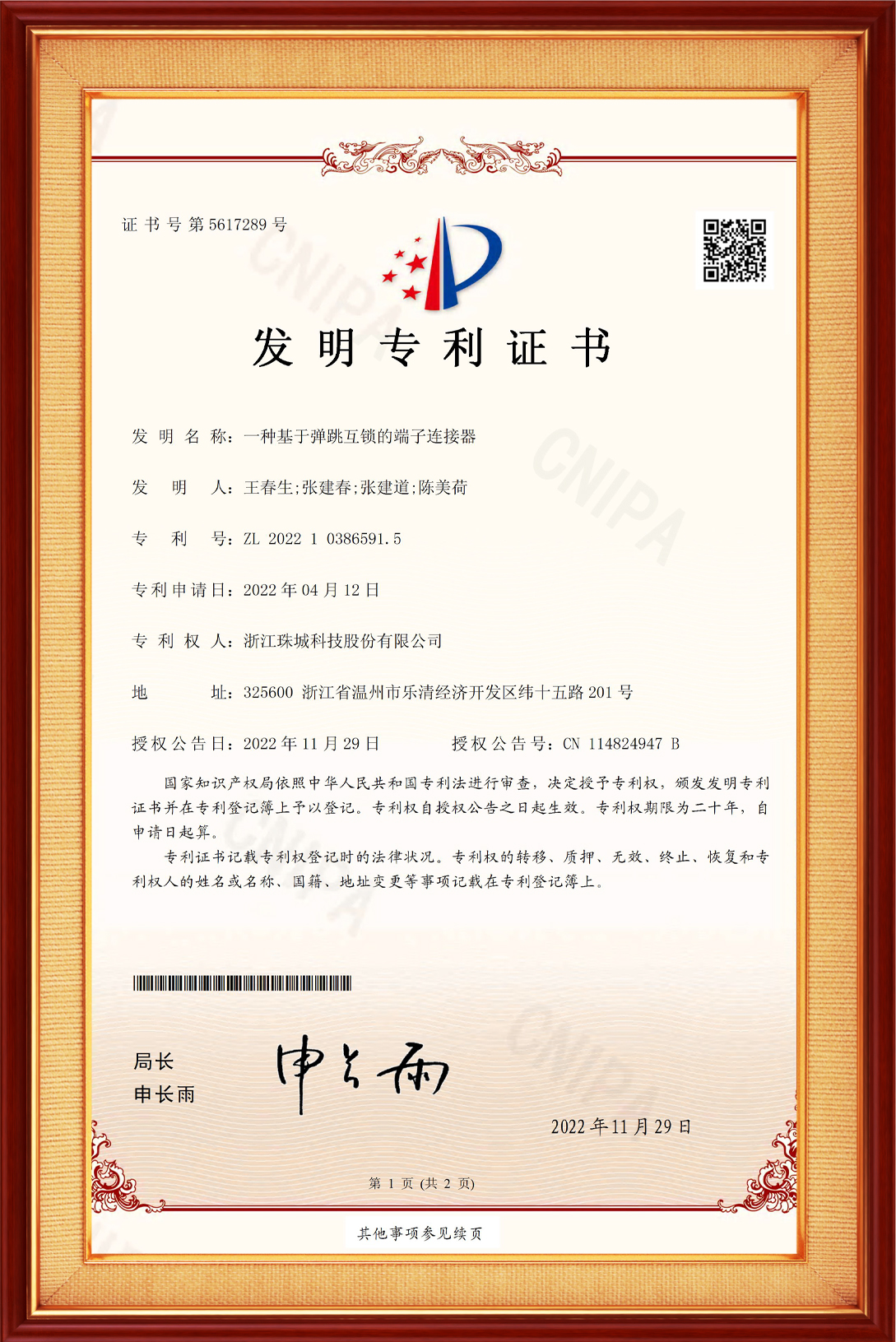 一種用于壓縮機(jī)玻璃柱的連接器發(fā)明專利證書(shū)